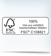 For Vispronet® products made of wood, only wood from local forests carrying the FSC® label is used. This seal guarantees ecological and, above all, sustainable forest management, through which we contribute to ensuring the long–term survival of the forest, its functionality, and biodiversity.